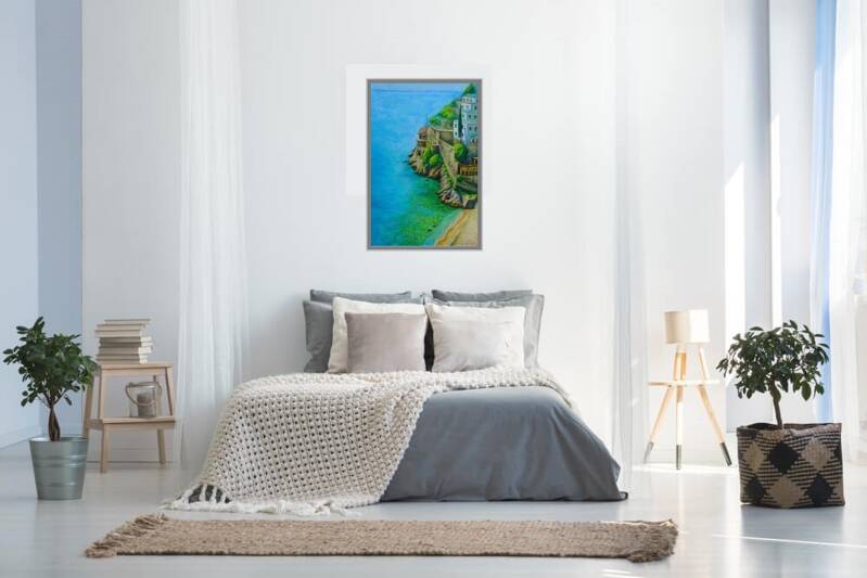 I liked this beautiful piece of coast near Naples with the picturesque stairs to the beach so much that I wanted to capture it on canvas. It has become beautiful and will certainly fit into many interiors.