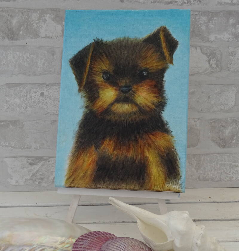 Ich habe selbst einen kleinen Yorkshire-Terrier. Ich liebe diese Rasse und vor allem den Charakter. Es war eine Laune, aber ich habe es wirklich genossen, diesen kleinen Hund einmal zu malen. Sehr schönes Gemälde für das Kinderzimmer.