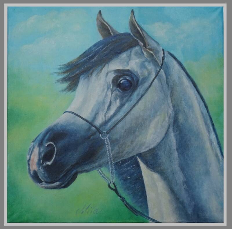 Ich habe ein großes Interesse und eine große Leidenschaft für Pferde. Ich würde eigentlich gerne alle Rassen auf Leinwand malen. Es werden sicher noch weitere folgen. Nun habe ich mich für die raffinierten Eigenschaften eines Araberpferdes entschieden. Erstaunlich, oder?