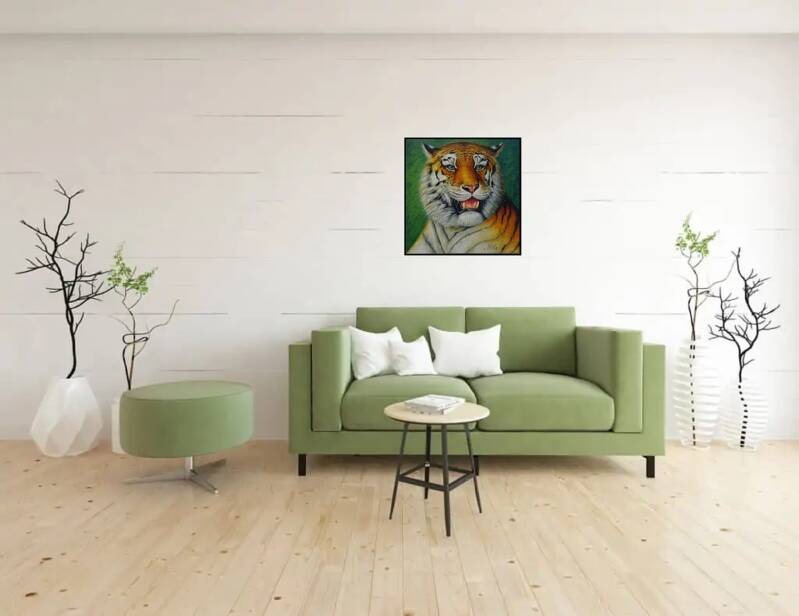 This is my tribute to the year of the tiger. What a beautiful animal. My husband is born in the year of the tiger. So this is also a tribute to the love of my live. For anyone who wants a similar painting on the wall, I can paint it on commission. In any desired format. Please call or sent me an email!